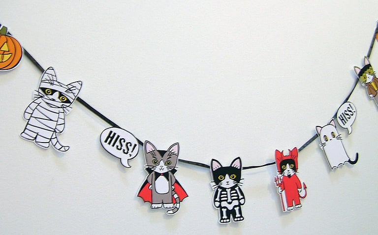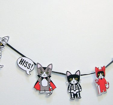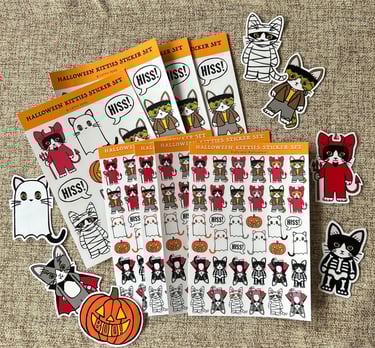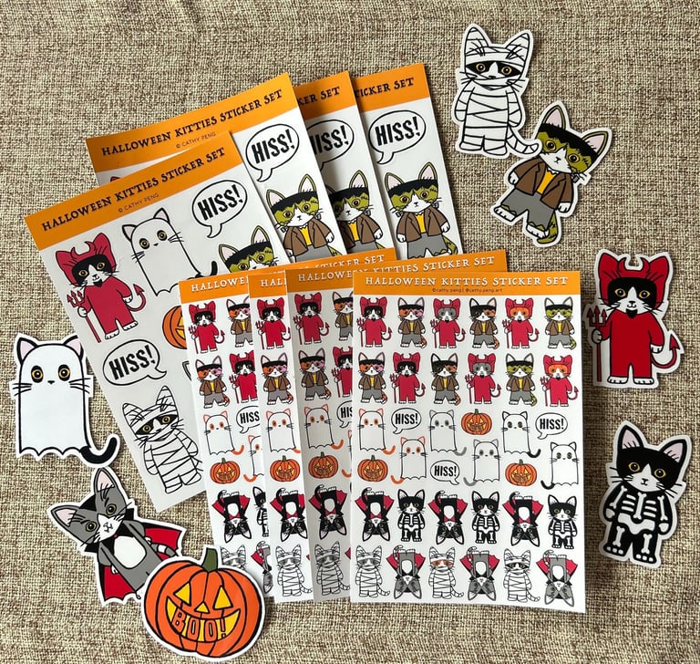 Enjoy delightful Halloween stickers, cards and decor featuring kitties and other cute creatures!
