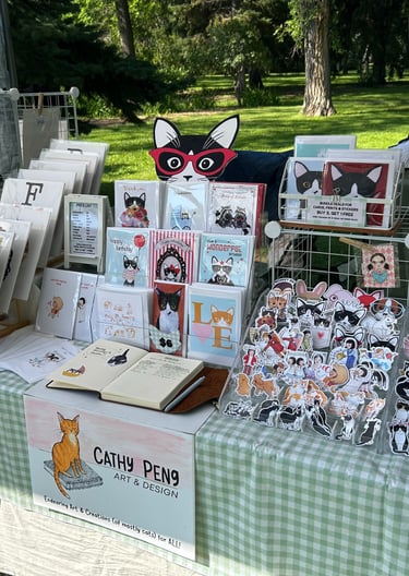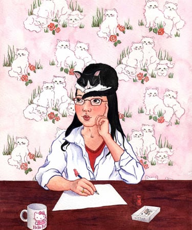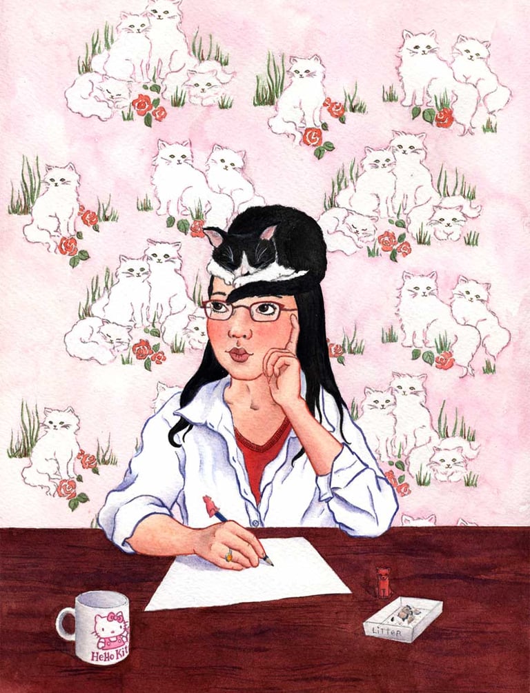 My small business was born in the summer of 2004, shortly after I was laid off from my first "real" job after art college. I adopted my first cat, Suki, a black and white tuxedo, from a local shelter when there was an overpopulation of cats in Toronto. Suki became my main muse for the next 19 years - finding her way onto greeting cards, buttons, magnets, clothing, bags and other stationery items - and still inspires me to this day.