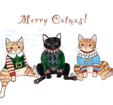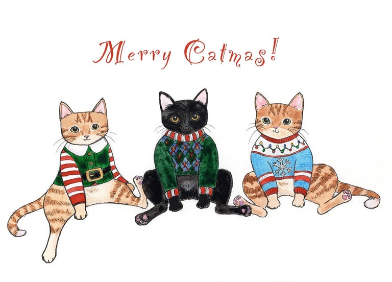 Share your holiday spirit with friends and loved ones by sending these festive greeting cards featuring not only felines but other cute creatures!