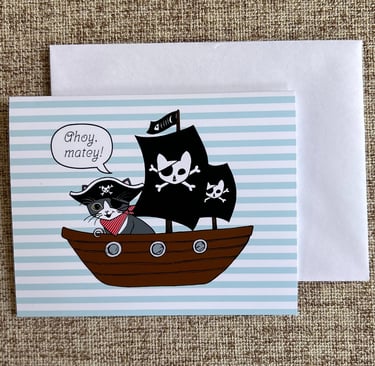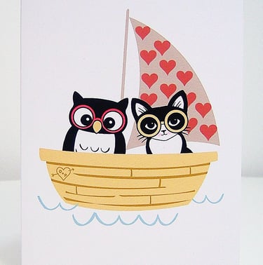 Owl & Pussycat in Their Loveboat | Romantic Greeting Card