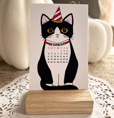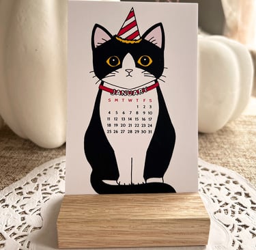 2026 Twelve Tuxedoes Mini Calendar with Wooden Base
